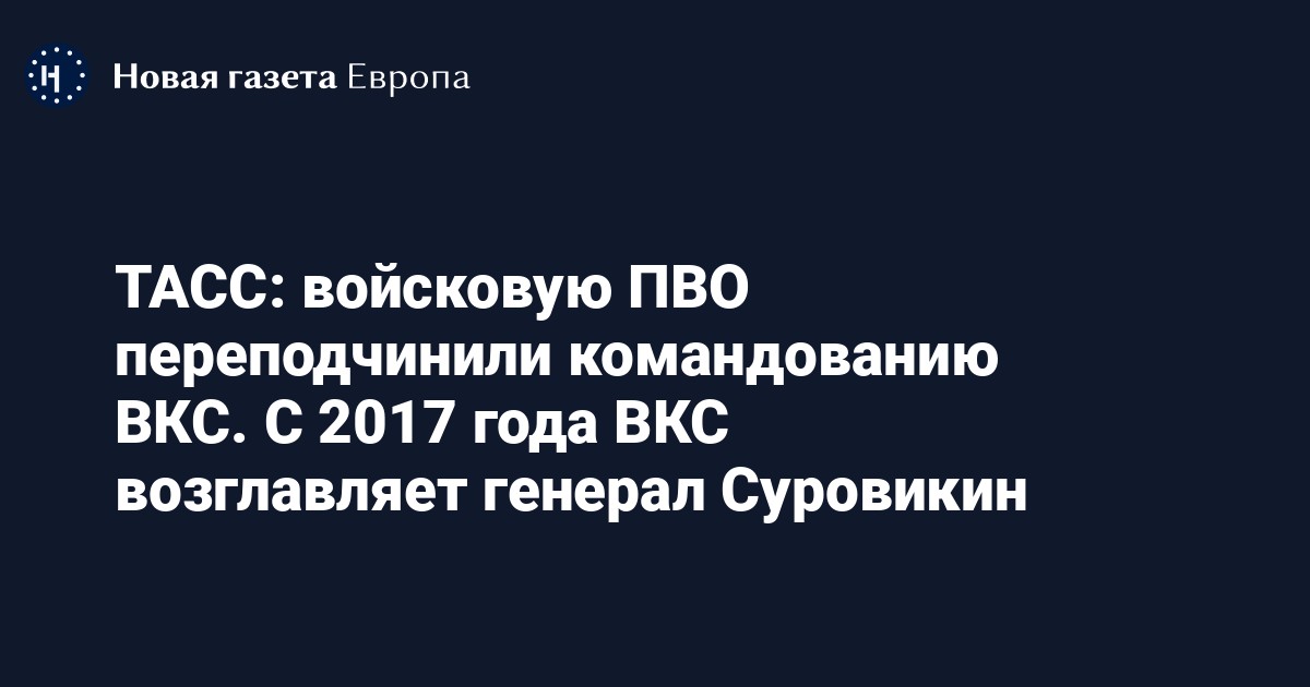 ТАСС: войсковую ПВО переподчинили командованию ВКС. С 2017 года ВКС возглавляет генерал Суровикин