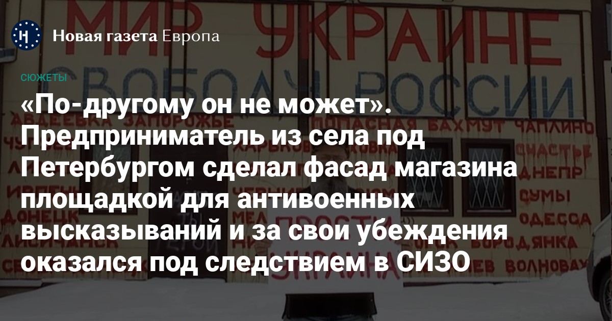 В селе Русско-Высоцкое Ленинградской области предприниматель Дмитрий Скурихин превратил свой магазин в трибуну для протеста. Он развесил на стены антивоенные плакаты, написал название разрушенных украинских городов, ездил на машине с наклейкой «Нет войне» и отказался брить бороду, пока Владимир Путин остается у власти. Местная полиция неоднократно составляла в отношении Скурихина административные протоколы за дискредитацию вооруженных сил РФ и за участие в акциях протеста. Сторонники «спецоперации» писали доносы на него. В итоге против предпринимателя было заведено уголовное дело по статье за повторную «дискредитацию». А уже после возбуждения второго дела по аналогичному обвинению Скурихина отправили под стражу. «Новая газета Европа» рассказывает историю протеста неравнодушного предпринимателя, который уверен, что всё делает правильно и по совести.