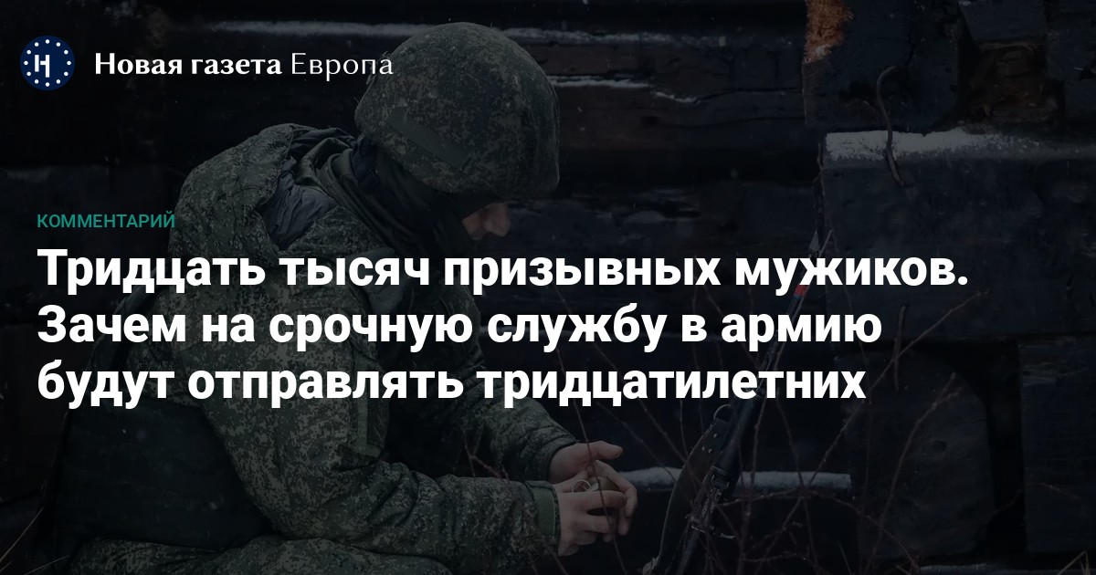 — В пояснительной записке указана цифра — 30 тысяч. Столько достигают 30 лет, не служили и не имеют права на отсрочку. Вот их могут попытаться призвать, — поясняет «Новой-Европа» Сергей Кривенко. — Речь о тех, кто в следующем году достигнет 27 лет (1997 года рождения) и по старой схеме направлялись бы в запас, но по новой будут подлежать призыву на срочную военную службу.