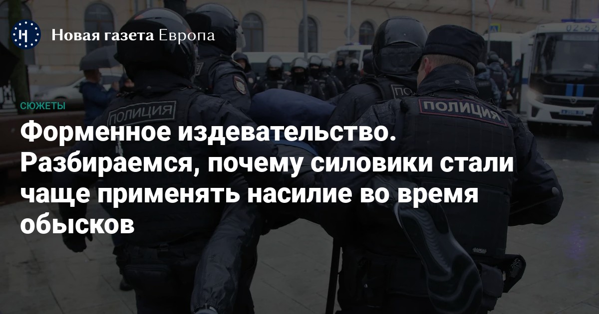 По мнению правозащитника, чаще всего инициаторами подобного жестокого обращения во время обысков по политическим делам выступают сотрудники Центра противодействия экстремизму (ЦПЭ), так называемые «эшники». «Там действительно есть идейные люди. На «Открытое пространство», как я знаю, написал донос НОД, у них точно существует взаимодействие с ЦПЭ. Не может быть такого, чтобы организация, которая ведет себя настолько мерзко и противоправно, существовала без согласия и желания закрыть глаза на некоторые вещи, которые вытворяются, — рассуждает Георгий Иванов. — Всё это ложится на общую атмосферу нарастания конфликта в обществе. Эти люди, которые служат, находятся в своем информационном потоке. Им показывают, что к пленным применяются пытки, силовики видят все издевательства — это их тренирует, и они тоже ожесточаются. Таково влияние любого вооруженного конфликта. К тому же те, кто был в зоне боевых действий, возвращаются глубоко травмированными людьми. А для полицейских, даже тех, кто не в зоне спецоперации, это всё очень близко. Пока не произошло ничего слишком жестокого, чего мы [так или иначе] ожидаем от них, но кто знает, что дальше будет? Пока трудно сказать, будет ли еще большее повышение градуса физического насилия».