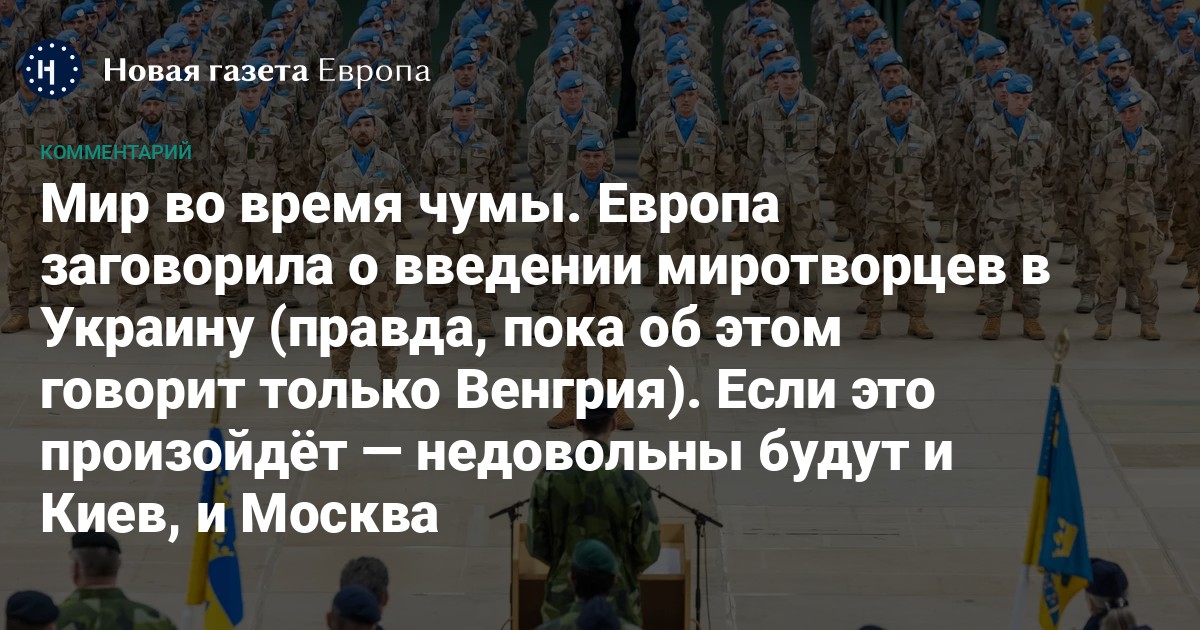 При этом многие эксперты считают, что венгерский премьер-министр играет в этой ситуации на стороне России. «Виктор Орбан лукавит, — заявляет »Новой-Европа« украинский военный эксперт Роман Свитан. — Суть его предложения в попытке зафиксировать сложившуюся на данный момент на фронте линию разграничения сторон и прикрыть войска РФ от грядущего в апреле-мае наступления ВСУ. Ввод миротворческих сил полностью отрежет для Украины возможность деоккупировать свои земли и изгнать врага на его территорию. Ведь любому профессионалу военного дела ясно, что удержать позиции в Запорожье для России — нереальная задача. ВСУ гарантированно вскоре выйдут к Азовскому морю. Предложенная Орбаном заморозка по корейскому сценарию »38 параллели« нужна Москве и абсолютно невыгодна Киеву». По словам Романа Свитана,