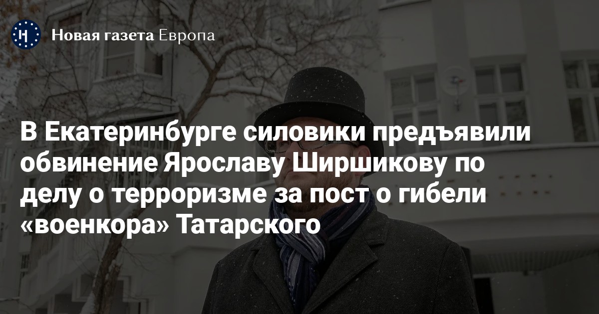 В Екатеринбурге силовики предъявили обвинение Ярославу Ширшикову по делу о терроризме за пост о гибели «военкора» Татарского