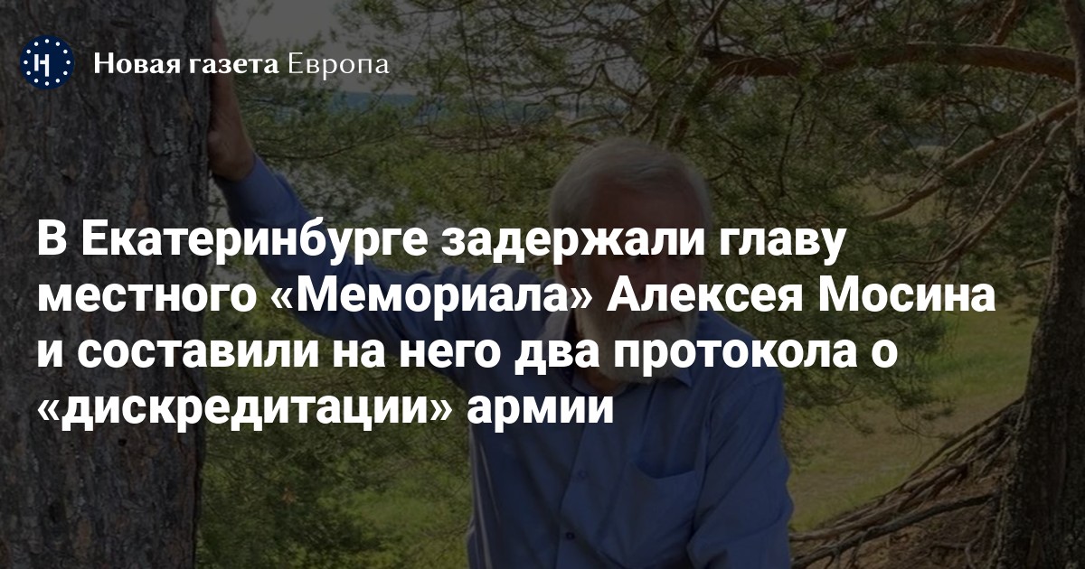 В Екатеринбурге силовики рано утром пришли домой к главе местного «Мемориала» Алексею Мосину. Они увезли его в отделение полиции и составили два протокола о «дискредитации» армии (ч.1 ст.20.3.3 КоАП). Об этом сообщили в «Мемориале».