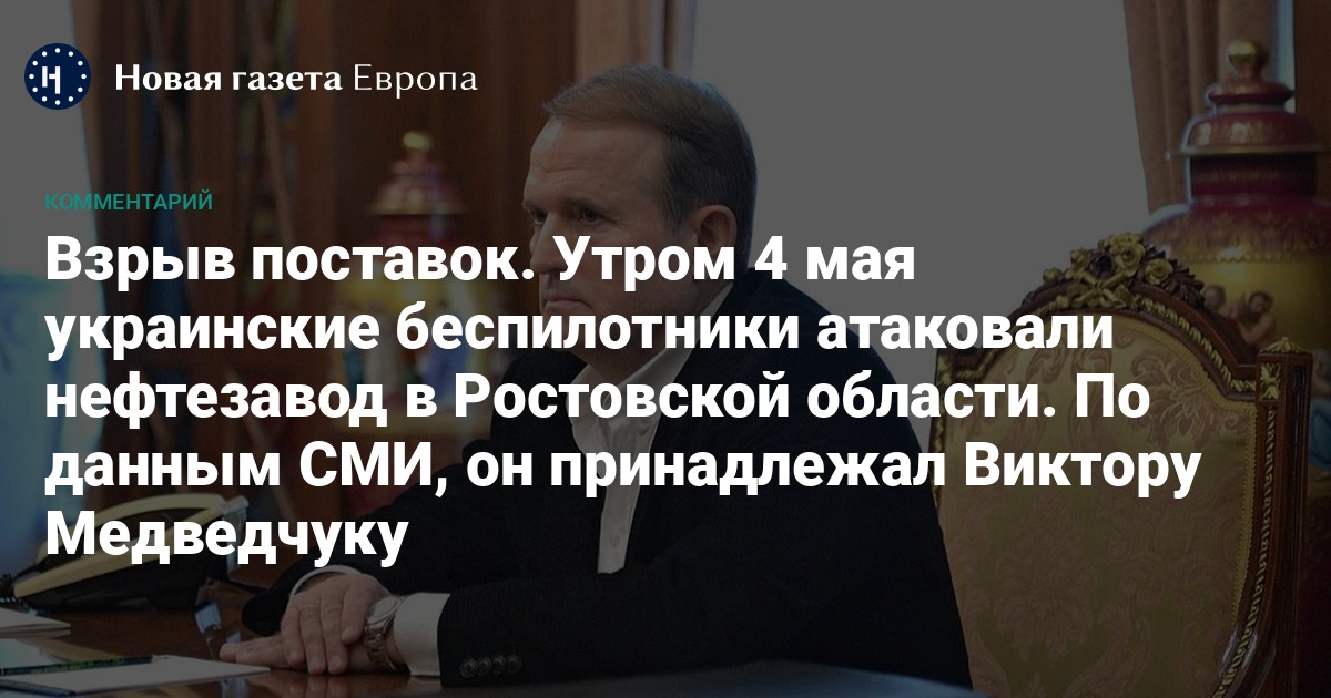 За минувшие сутки в России произошли еще как минимум две атаки беспилотников на крупные склады ГСМ. В ночь на среду 3 мая в Тамани загорелся резервуар с топливом, пожар более 20 часов бушевал на площади в 1 200 квадратных метров. Тушить его пришлось силами пяти пожарных поездов. А в ночь на четверг беспилотники атаковали Ильский нефтеперерабатывающий завод, он расположен в 30 километрах западнее Краснодара. В результате удара беспилотника загорелась одна из емкостей с топливом. По данным пресс-службы губернатора Краснодарского края, к шести утра четверга пожар удалось полностью потушить.