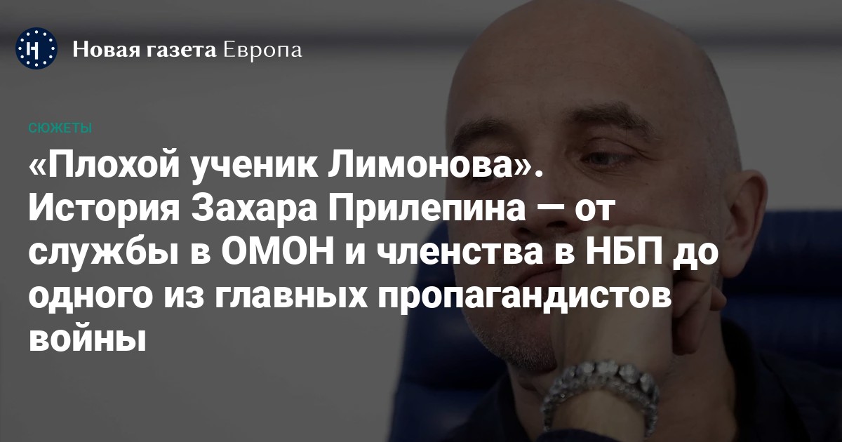 «Новая газета Европа» рассказывает историю Захара Прилепина — человека, который прошел путь от служившего в Чечне ОМОНовца до писателя, по книгам которого ставил спектакли Кирилл Серебренников, а затем — снова до воюющего, теперь уже в Украине, политика.