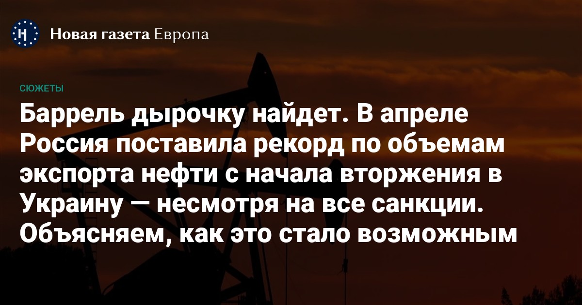 В апреле Россия поставила рекорд по объемам экспорта нефти с начала вторжения в Украину — несмотря на все санкции. Объясняем, как это стало возможным