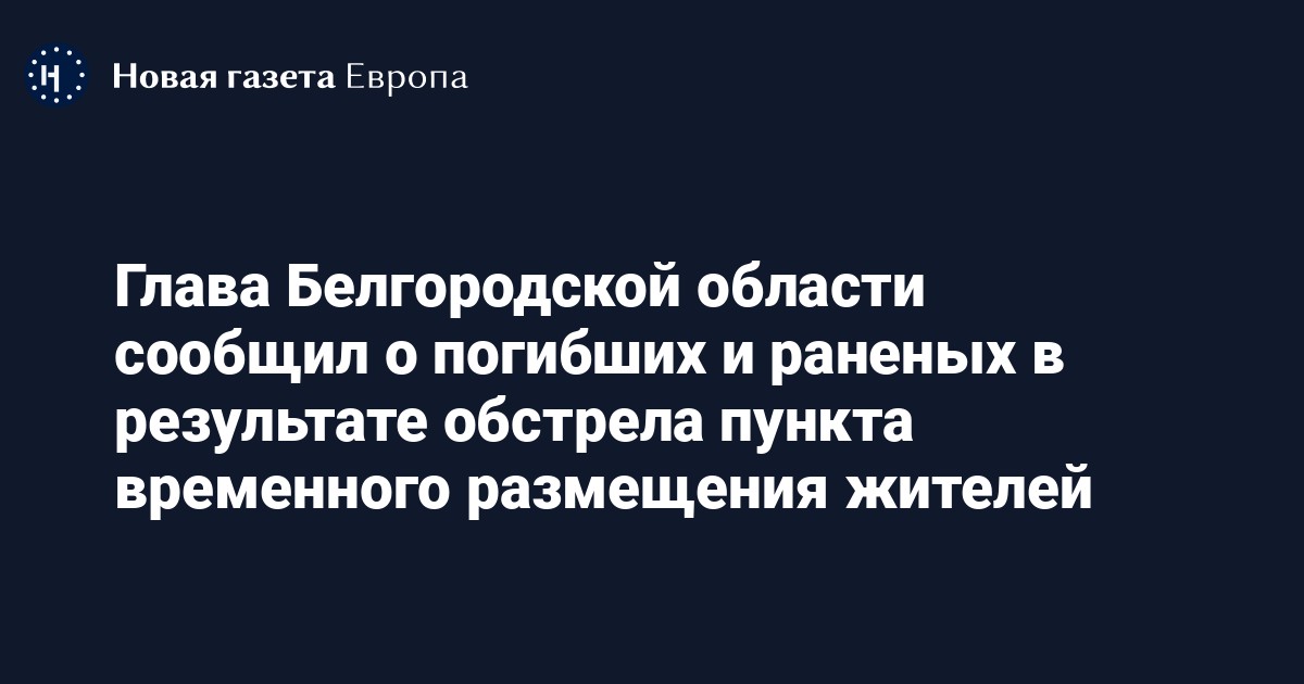 «Сегодня Вооруженные силы Украины обстреляли пункт временного размещения жителей отселенных муниципальных образований, сельских муниципальных образований Шебекинского округа. Погибли, ранены люди», — сказал Гладков.
