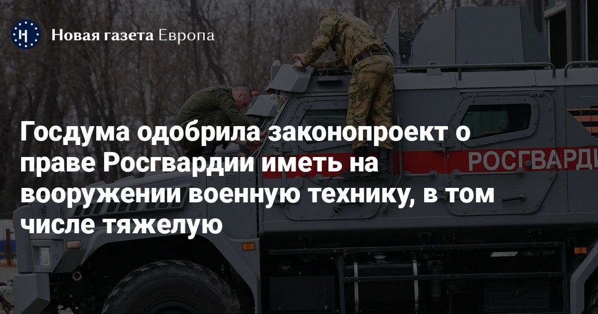 Госдума одобрила законопроект о праве Росгвардии иметь на вооружении военную технику, в том числе тяжелую