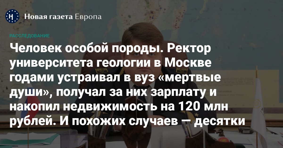 Ректор университета геологии в Москве годами устраивал в вуз «мертвые души», получал за них зарплату и накопил недвижимость на 120 млн рублей. И похожих случаев — десятки