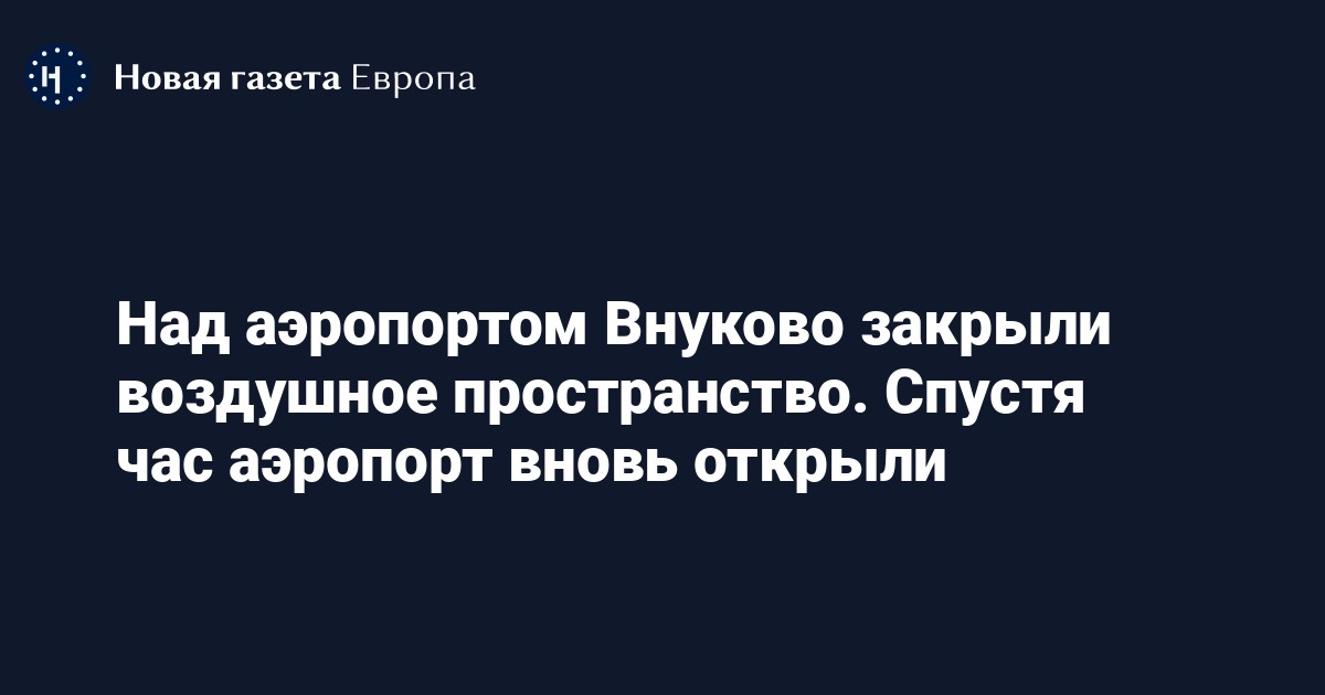 «Закрыто воздушное пространство в районе аэропорта Внуково, отложены вылеты и прилеты рейсов», — пишет информагентство.
