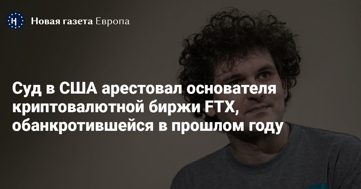Суд в Нью-Йорке арестовал основателя криптовалютной биржи FTX Сэма Бэнкмана-Фрида. Об этом сообщает Associated Press.