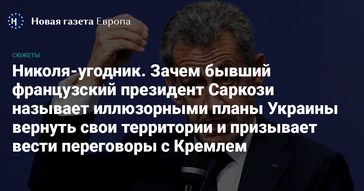 Зачем бывший французский президент Саркози называет иллюзорными планы Украины вернуть свои территории и призывает вести переговоры с Кремлем