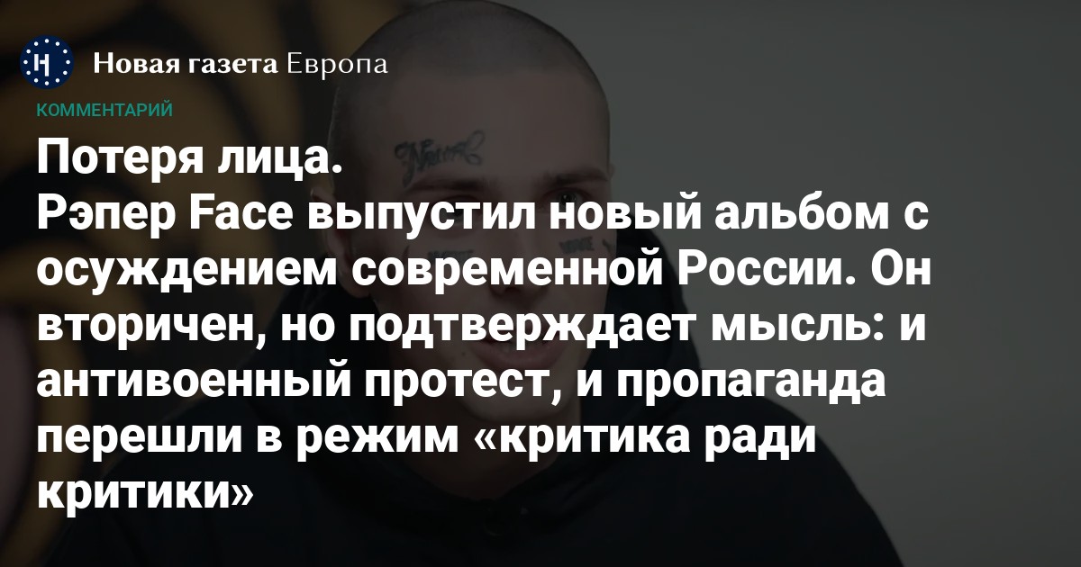 Иван Дрёмин, известный как Face, больше года назад уехал из России в знак протеста против вторжения в Украину. Всё это время он молчал как автор (хотя давал концерты с весьма политическими жестами), а в ночь на 1 сентября внезапно выложил в сеть свой новый альбом «Ничего хорошего». Восемь коротких треков — в среднем по две-три минуты — описывают личное отношение Дрёмина к покинутой им родине (плохое), к россиянам (такое же, как к родине) и к тому, что происходит лично с ним сейчас. Корреспондент «Новой-Европа» внимательно послушал «Ничего хорошего» несколько раз и объясняет, почему этот альбом любопытный, но в целом не вызывает новых эмоций.