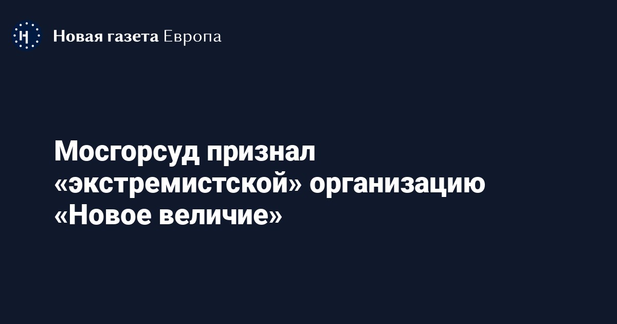 Мосгорсуд признал «экстремистской» организацию «Новое величие», сообщает ТАСС со ссылкой на корреспондента из зала суда.