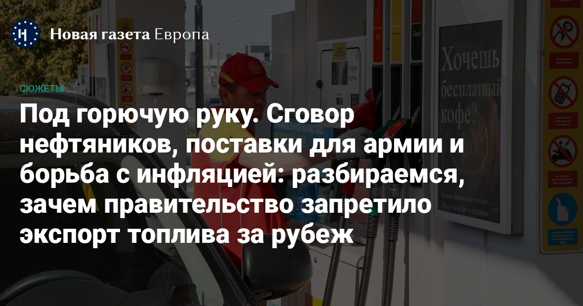 Правительство одним днем ввело запрет на поставки за рубеж российского бензина и дизеля. До этого цены на топливо в России стали резко расти — во многом из-за решения самого правительства сократить компенсации нефтяникам. Однако текущий запрет на экспорт — это часть торга между правительством и нефтяниками, поэтому он не продлится долго, считают аналитики. «Новая-Европа» рассказывает, что заставило власти пойти на экстренные меры и как запрет повлияет на цены на топливо в России и мире.