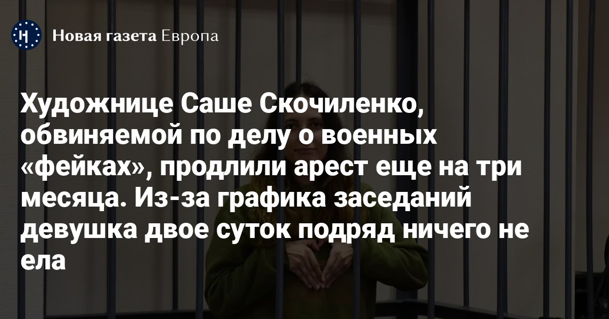 Как пишет «Медиазона», на прошлом заседании ей стало плохо в зале суда — из-за графика заседаний она двое суток подряд ничего не ела. У Скочиленко целиакия, порок сердца и ПТСР.