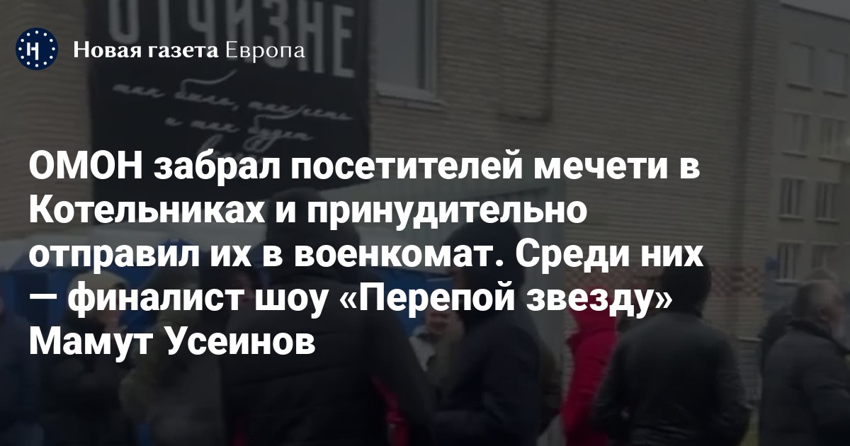 Сотрудники ОМОН провели «облаву» на посетителей мечети в Котельниках — мужчин насильно привезли в военкомат и одним днем отправили в армию. Об этом сообщил 25-летний финалист шоу «Перепой звезду» на Первом канале Мамут Усеинов, который оказался среди задержанных.