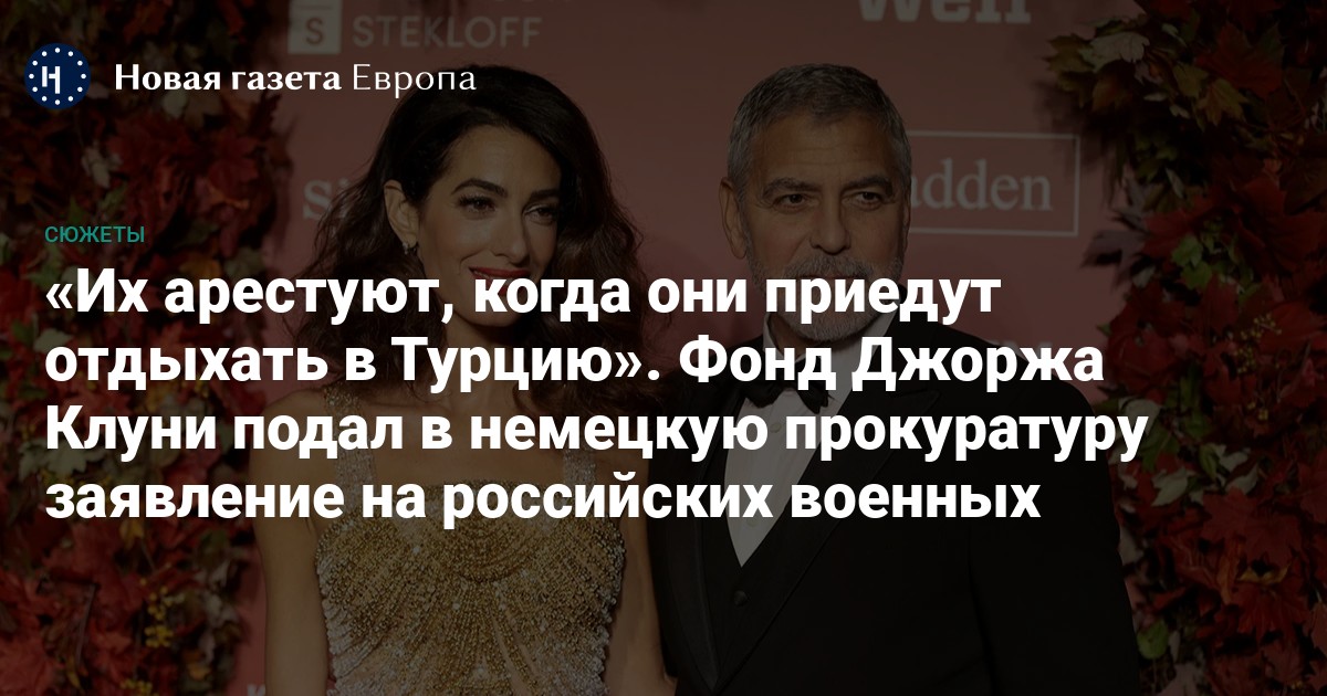 Правозащитный фонд американского актера и режиссера Джорджа Клуни и его жены, адвоката Амаль Клуни (Clooney Foundation for Justice) опубликовал сообщение о том, что его юристы подали в федеральную прокуратуру Германии три ходатайства, касающиеся военных преступлений, которые были совершены российскими военными в Украине. Правозащитники добиваются выдачи ордеров на арест этих военных и утверждают, что обладают вескими доказательствами их вины. Речь идет о двух десятках командиров среднего и высшего звена, которые могут быть причастны к неизбирательным ракетным ударам, пыткам, казням и изнасилованиям на территории Украины.