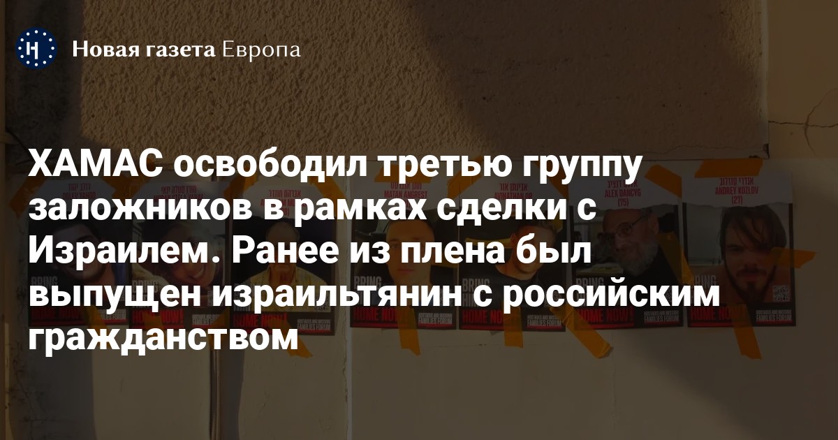 ХАМАС освободил третью группу заложников в рамках сделки с Израилем. Ранее из плена был выпущен израильтянин с российским гражданством