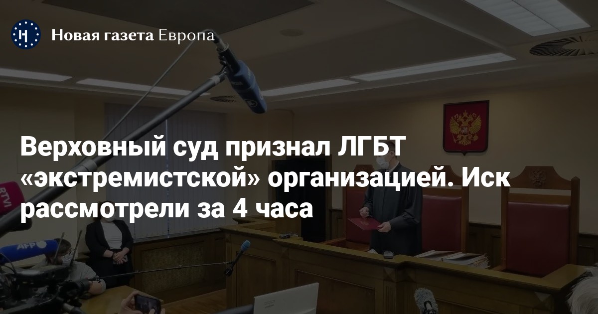 Верховный суд РФ в Москве признал «экстремистской» организацией и постановил запретить «Международное общественное движение ЛГБТ». Об этом сообщает корреспондент «Новой газеты Европа».
