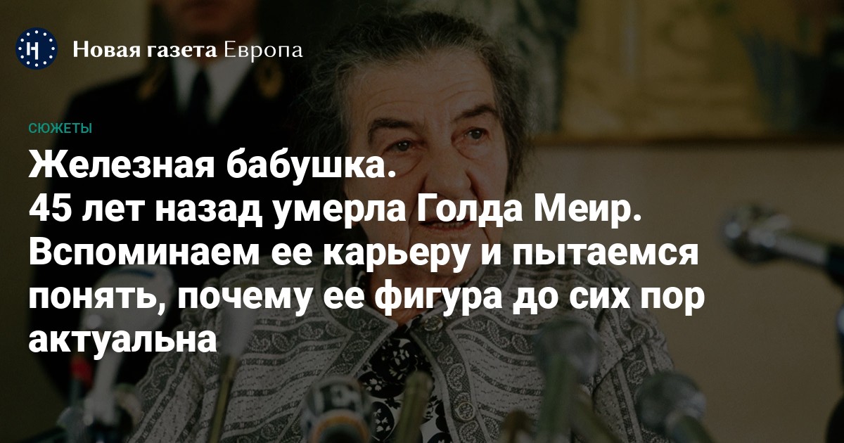 Поэтому партия, во избежание потрясений, призывает компромиссную фигуру — Голду Меир, чей рейтинг популярности составляет всего 3 (!) процента. Временно, разумеется, до грядущих вскоре выборов…