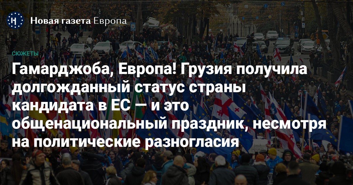 Грузия наконец-то стала страной-кандидатом в ЕС, а с Украиной и Молдовой начнутся переговоры по членству. В Тбилиси получению статуса радовались и власти, и оппозиция, и рядовые граждане, которым за последние два года пришлось не раз размахивать европейскими флагами на уличных протестах. Главной интригой саммита стала позиция премьер-министра Венгрии Виктора Орбана. Он мог заблокировать решение по Украине, при этом, как выяснилось, не имел ничего против своих союзников в лице «Грузинской мечты». О том, как исторический саммит в Брюсселе смотрелся из Тбилиси, рассказывает Ия Баратели.