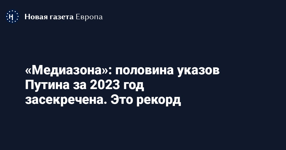 Доля секретных указов президента России Владимира Путина в 2023 году достигла 49,5%. Предыдущий рекорд по засекреченным указам Путин установил в 2001 году в разгар Второй чеченской войны, выяснила «Медиазона», проанализировав данные сайта официального опубликования правовых актов.