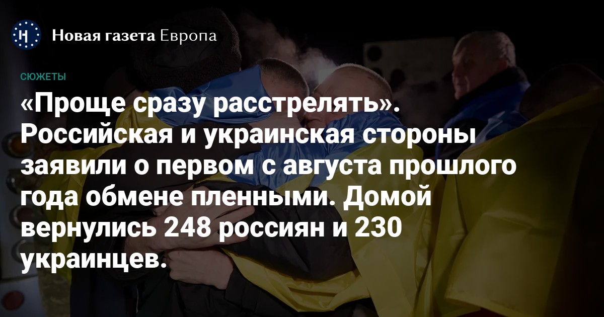 По данным украинского омбудсмена Дмитрия Лубинца, до дома уже добрались 230 украинских пленных. Уполномоченный Верховной Рады по правам человека рассказал, что военные находились в плену длительное время. Среди них есть защитники Мариуполя, «Азовстали» и острова Змеиный. Лубинец отметил, что вернувшиеся из плена мужчины и женщины пребывали в неволе от шести месяцев до полутора лет. Все они в плохом физическом состоянии, истощены и сильно похудели.