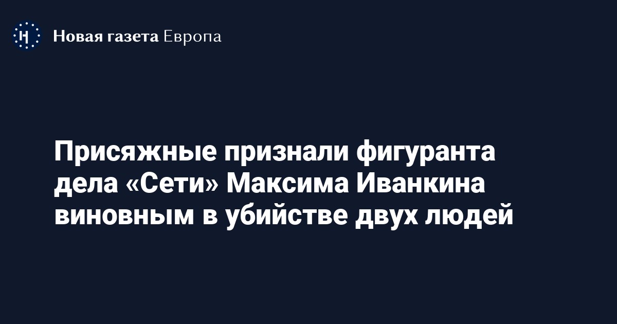 Присяжные признали фигуранта дела «Сети» Максима Иванкина виновным в убийстве двух людей