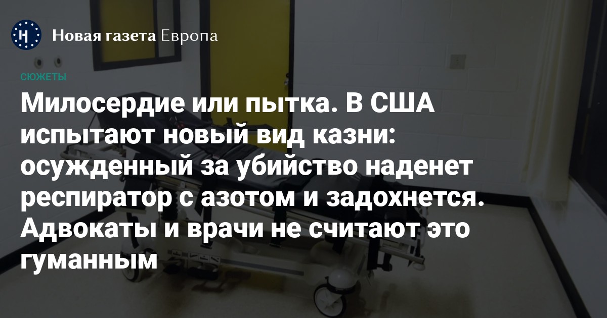 В ноябре прошлого года Верховный суд Алабамы удовлетворил ходатайство прокурора о приведении в исполнение смертного приговора Смиту. В качестве альтернативы ядовитой инъекции власти предложили «новинку» — удушение азотом. Губернатор Алабамы Кей Айви подписала закон об использовании этого способа казни еще в 2018 году, ранее подобные юридические нормы приняли в Оклахоме и Миссисипи.