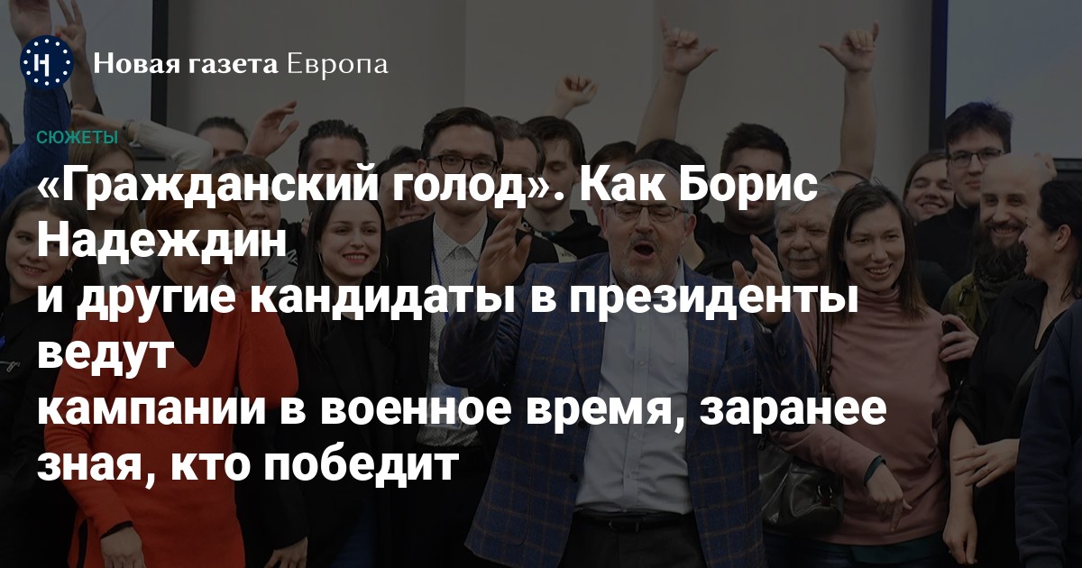 В итоге единственным антивоенным кандидатом оказался Борис Надеждин, единогласно выдвинутый на съезде партии «Гражданская инициатива» 23 декабря 2023-го и до начала января остававшийся в тени Дунцовой.