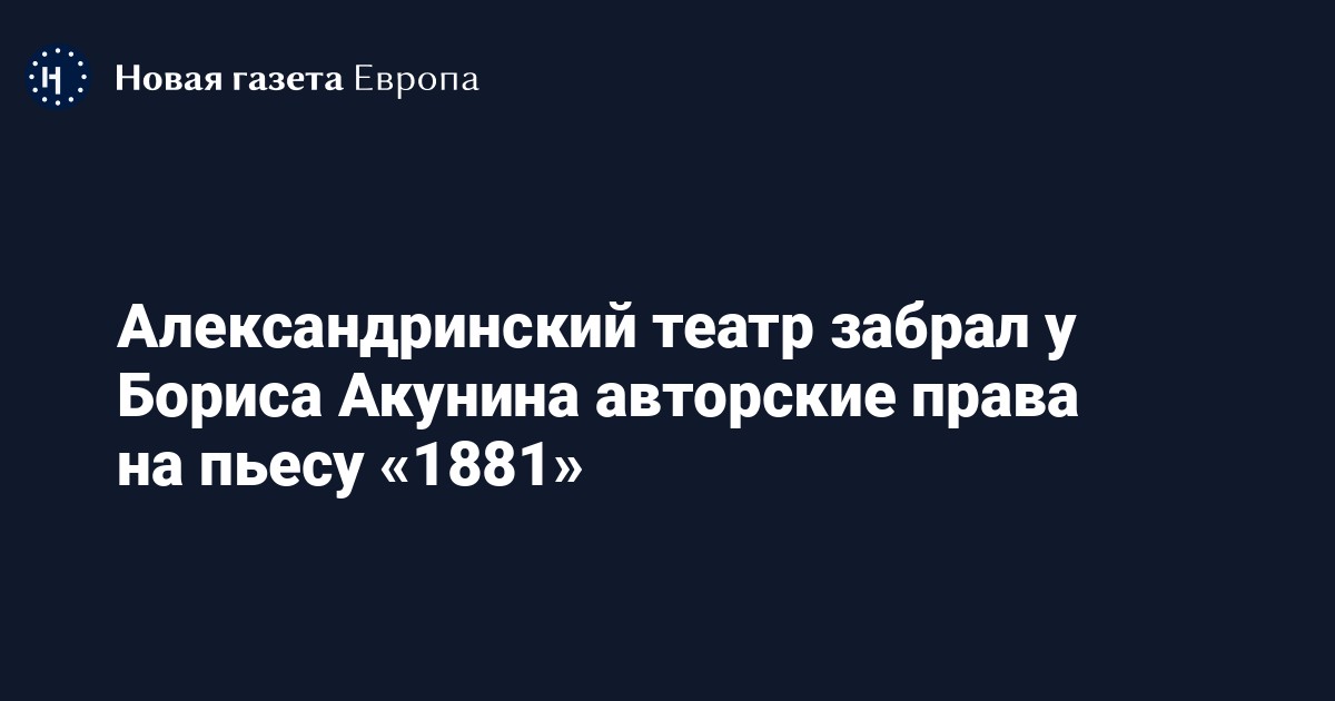 Александринский театр забрал у Бориса Акунина авторские права на пьесу «1881»
