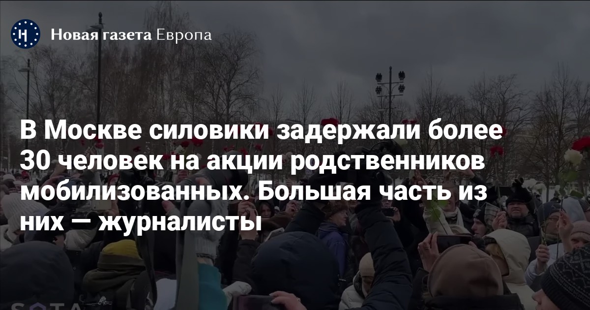В Москве на Манежной площади силовики задержали журналистов, освещавших акцию родственников мобилизованных из движения «Путь домой». Об этом пишет SOTA и «Осторожно, новости», а также сообщает журналистка Stream 177, которая ведет прямую трансляцию с акции.