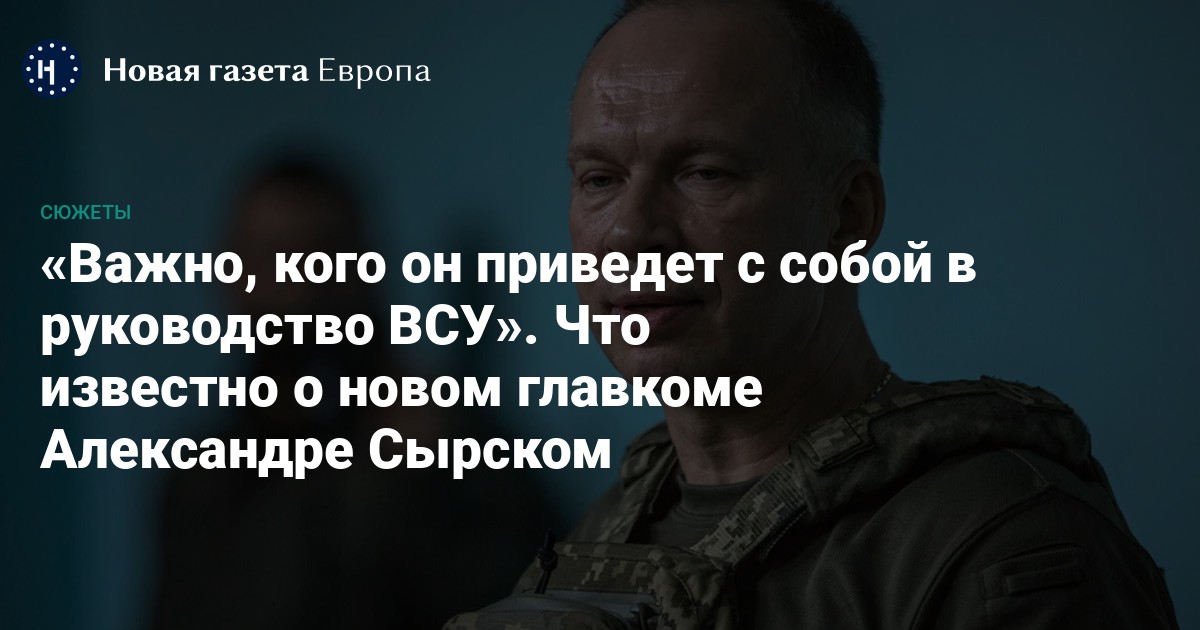 «Сырский входил в команду Залужного, — рассказывает «Новой-Европа» военный эксперт, полковник ВСУ в запасе Роман Свитан. — При этом надо понимать, что он человек той же системы. Сырский полностью в теме всех взаимоотношений командования, отлично знает обстановку на фронте с 2014 года, сам руководил до вчерашнего дня наиболее сложным восточным направлением обороны от Купянска до Горловки. Именно под его руководством ВСУ защищали Бахмут. Двумя наиболее серьезными победами генерал-полковника считаются оборона Киева и успешное наступление в Харьковской области. Его назначение объяснимо и логично. Ведь именно на сухопутные войска на этой войне легла самая большая нагрузка и ответственность. Теперь важно, кого он приведет с собой в руководство ВСУ. Ведь один — даже самый талантливый — офицер ничего сделать не сможет».