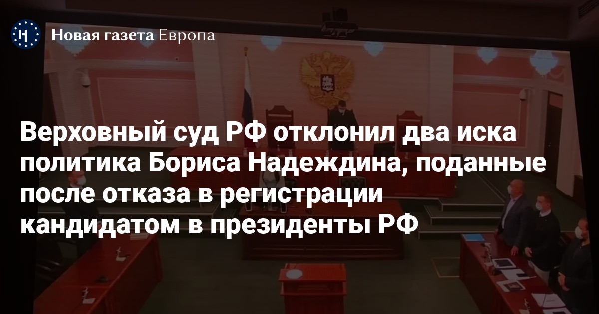 Верховный суд отклонил первый иск Бориса Надеждина о некорректной форме списка сборщиков подписей. Об этом сообщается в телеграм-канале политика.