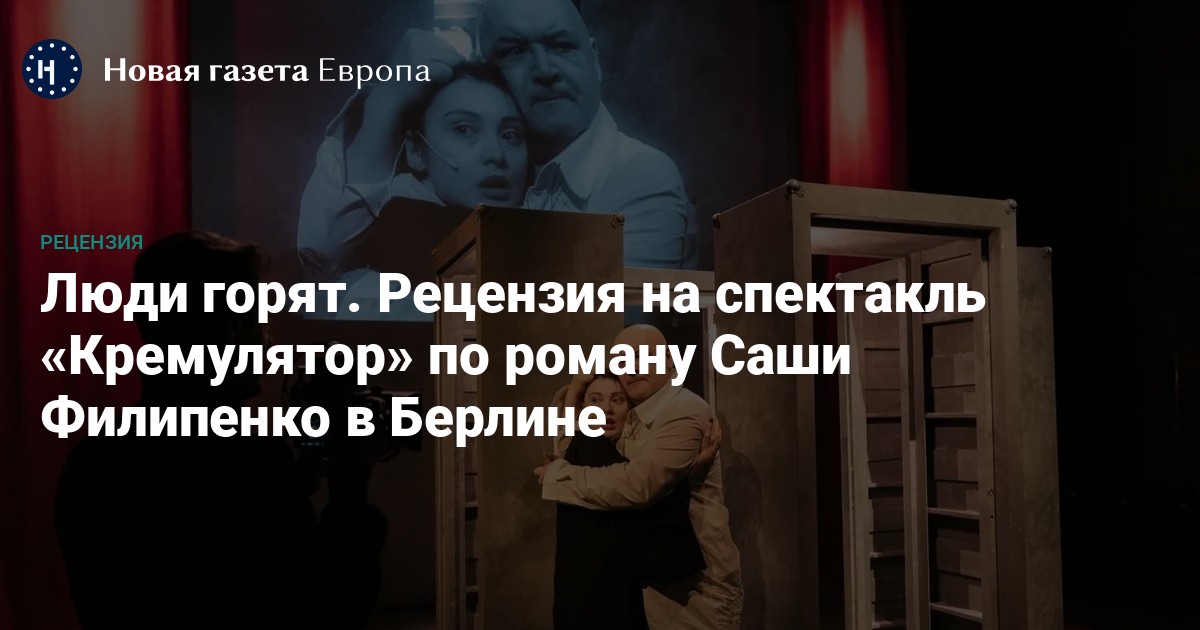 В Берлинском Säalchen, небольшом модном пространстве недалеко от Александрплатц, сыграли премьеру спектакля «Кремулятор». Звездный состав: Максим Суханов в главной роли, режиссер Максим Диденко, композитор Сергей Невский; роман Саши Филипенко как литературная основа и сам Саша в зале — продюсеру Светлане Доле, работавшей без поддержки немецких стационарных театров, удалось выпустить полноценный спектакль, который интересно разбирать с разных точек зрения.