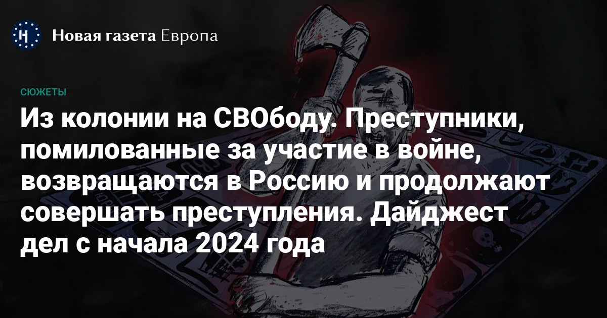 Преступники, помилованные за участие в войне, возвращаются в Россию и продолжают совершать преступления. Дайджест дел с начала 2024 года