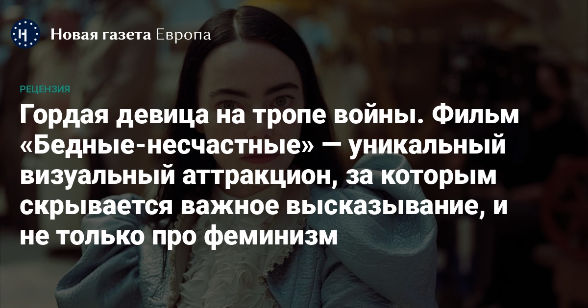 «Бедняжек» легко назвать плакатным профеминистским кино, которое делает «второстепенную» женщину (Бог в «Бедняжках» создал Беллу так же, как христианский Бог вырезал Еву из ребра Адама) хозяйкой ее судьбы. Особенно если принимать во внимание время действия оригинального романа — конец 19 века, когда женскую депрессию и ангедонию повально называли «бешенством матки», брюки были социальным вызовом, а об избирательном праве не могло быть и речи.