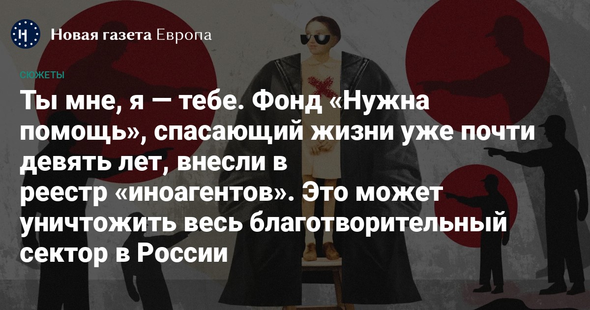 В качестве причины внесения «Нужна помощь» в реестр иноагентов указано то, что он поддерживает других иноагентов и «участвует в создании их материалов». За это теперь тоже наказывают клеймом. «Нужна помощь» с внесением в реестр не согласен и планирует его оспаривать.