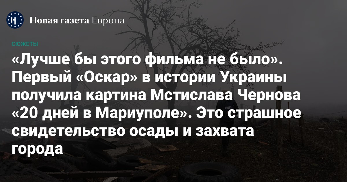 Оценить «20 дней в Мариуполе» с точки зрения его кинематографических качеств невозможно. Чернов с коллегами фиксирует исторические события, но делает это, повторим, изнутри — там, где «геополитика» превращается в военные преступления. Камера его беспощадна. Фильм становится не хроникой, а призывом и действием: живым стимулом для аудитории помнить о том, что пережили и продолжают переживать ежедневно украинцы. Во время кинофестиваля «Сандэнс» Чернов обратился к публике и сказал, что «20 дней в Мариуполе» — не исторический фильм. Это фильм о том, что происходит в Украине прямо сейчас. В интервью он признавался, что был бы рад забыть то, что увидел в Мариуполе. Но именно камера не позволяет ему это сделать.