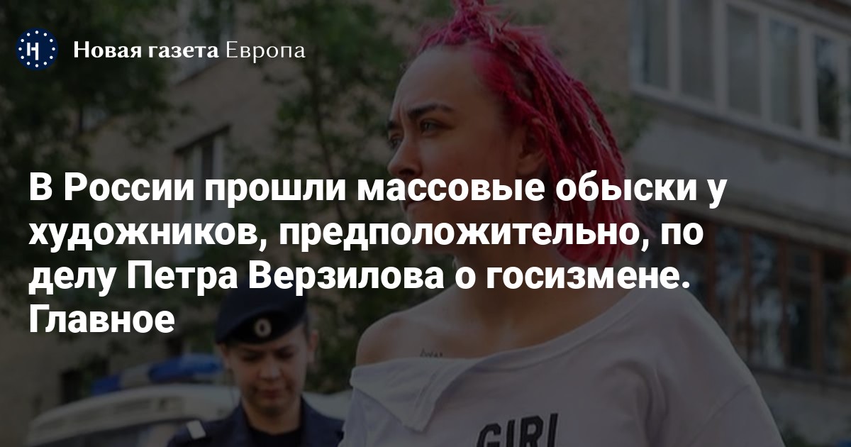 У художников и активистов по всей России прошли обыски. Как сообщил проект «Сетевые свободы», визиты силовиков связаны с новым уголовным делом о госизмене против участника Pussy Riot и бывшего издателя «Медиазоны» Петра Верзилова. «Новая-Европа» собрала все, что известно об этих обысках.