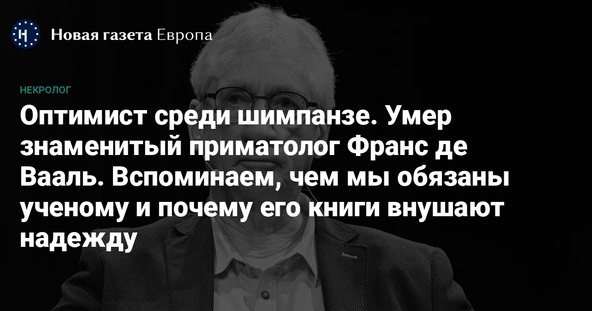 Чем важно наследие де Вааля для науки и просвещения и почему его идеи как нельзя кстати именно сегодня, рассказывает кандидат политических наук Кирилл Фокин.