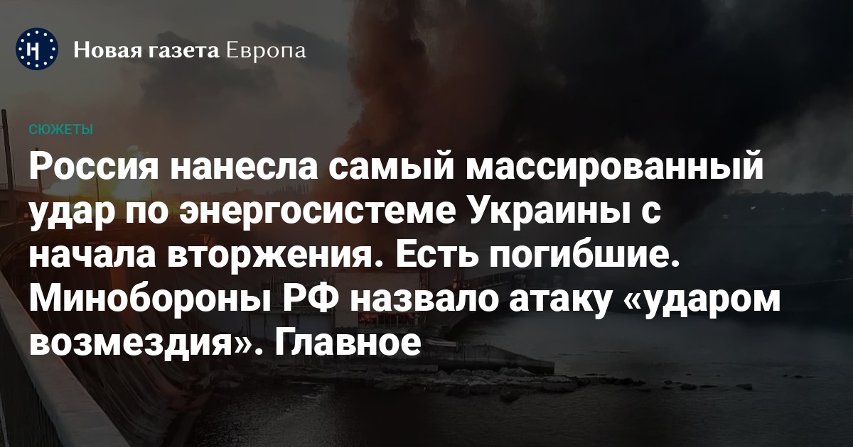 Россия нанесла самый массированный удар по энергосистеме Украины с начала вторжения. Есть погибшие