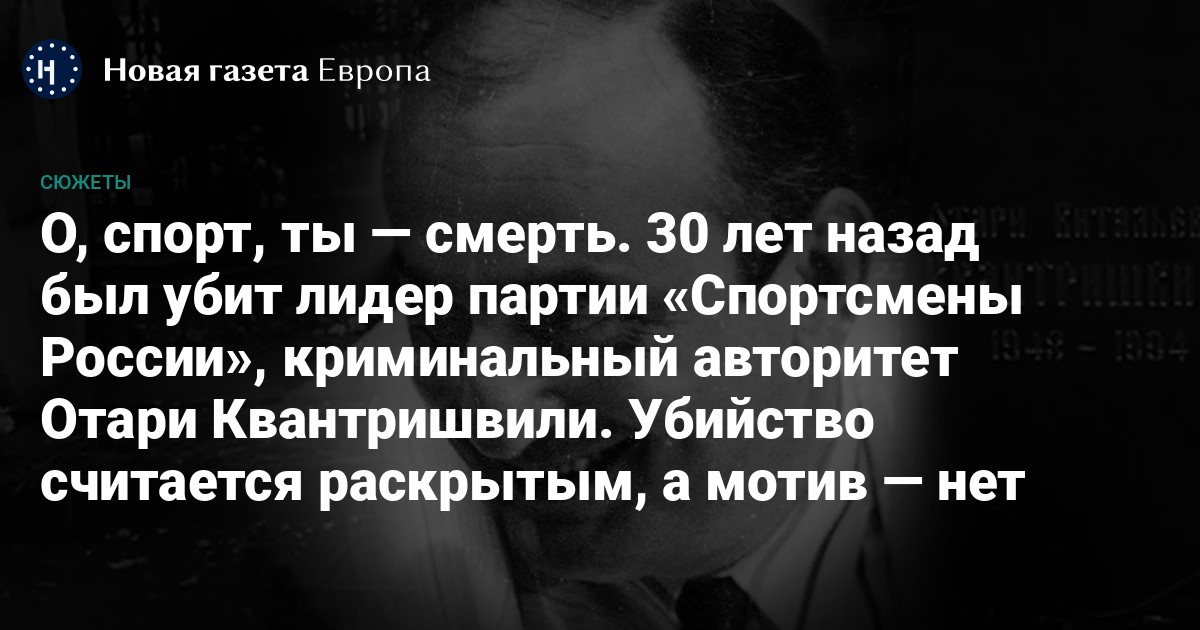 30 лет назад был убит лидер партии «Спортсмены России», криминальный авторитет Отари Квантришвили. Убийство считается раскрытым, а мотив — нет