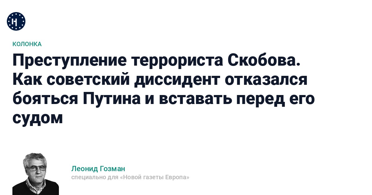 Он еще из советских диссидентов. Первую протестную акцию осуществил в 19 лет, первый раз арестован в 21 год. Кроме арестов и обысков, в биографии еще и диагноз «вялотекущая шизофрения» — такой болезни нет нигде в мире, ее придумали советские психиатры, чтобы сажать в психушку тех, кому не нравится советская власть, чтобы там уже делать с ними и вовсе что угодно. Через психушки в свое время прошли многие — и Новодворская, и генерал Григоренко (правозащитник, основатель Украинской Хельсинкской группы. — Прим. ред.), и скончавшийся недавно один из «семерых смелых» Виктор Файнберг (диссидент, участник акции на Красной площади против вторжения советских войск в Чехословакию в 1968 году. — Прим. ред.). Скобов — один из этой героической когорты. Полезную вещь придумали люди в белых халатах.