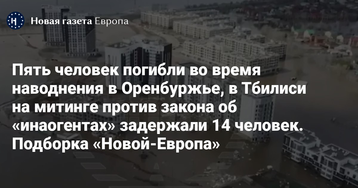 Пять человек погибли во время наводнения в Оренбуржье, в Тбилиси на митинге против закона об «инаогентах» задержали 14 человек