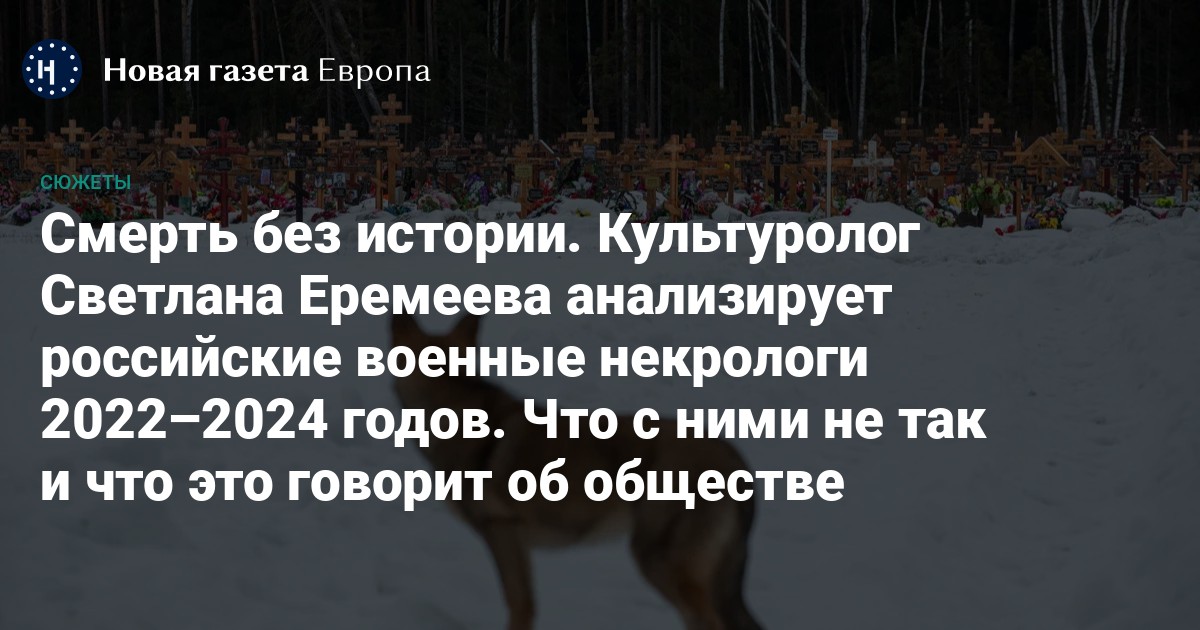 Светлана Еремеева (автор книги «Мертвое время» — о военных похоронах в России и Украине 2022 года) изучила сотни сообщений о гибели мужчин на войне в Украине, опубликованных в сети «ВКонтакте», в местных СМИ, на страницах местных администраций или в пабликах, и отвечает на все эти вопросы.