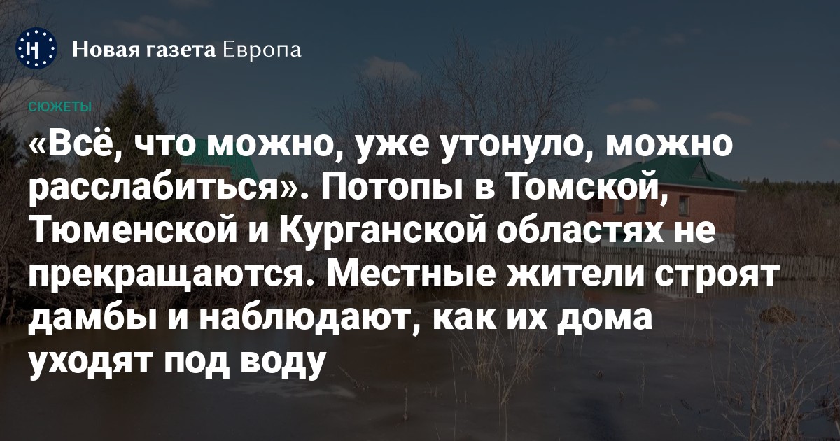 — Людей из сёл сейчас пытаются эвакуировать, но многие остаются, потому что боятся мародеров. Еще люди хотят переждать большую воду. Потому что я не представляю, куда и как ехать. Вот деревни рядом с Томском, заберут люди с собой собаку и кошку, но как корову или куриц увезти с собой? Куда? Кто-то остается, кто-то уезжает. В основном эвакуируют людей в деревнях в других районах области, там попроще.