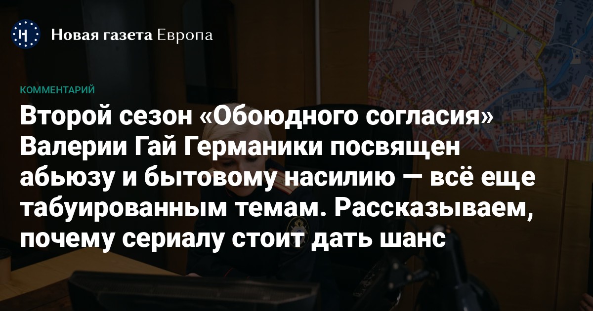 При всех спорных моментах, одно только обращение к столь деликатной и сложной проблеме — большое событие. В российском обществе о насилии в отношении женщин говорят всё чаще, но кинематографисты по-прежнему обходят тему за километр (из удачных работ вспоминается разве что пост-хоррор «Сестры»). На выходе получилась полностью завершенная история, не требующая никаких дополнений. Да только продюсеры Kion так обрадовались обилию просмотров, что решили превратить «Обоюдное согласие» в антологию. Избранная ими тема второго сезона не менее тяжелая — бытовое насилие.