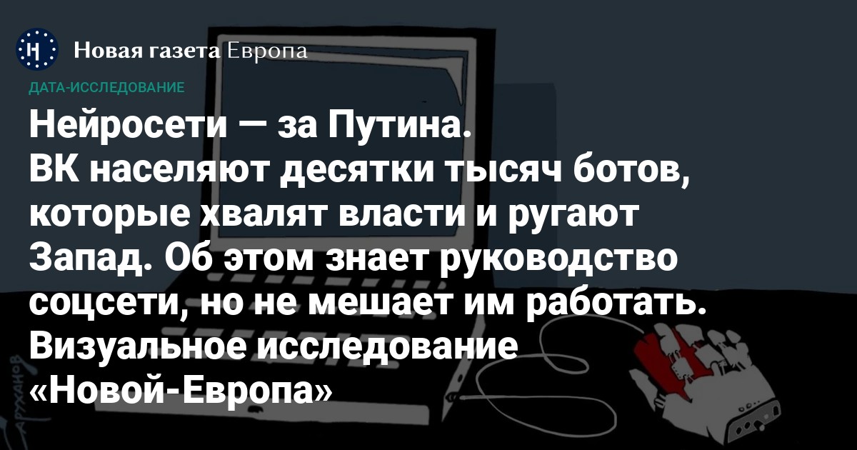 Масштабы активности ботов в ВК огромны: в популярных новостных пабликах они пишут до 35% всех комментариев. Ботосфера населена эльфами, троллями, поклонниками губернаторов и депутатов, нейросетями, защищающими «Единую Россию», и даже СММ-щиками «Ростелекома». Чтобы разобраться, кого можно встретить на просторах крупнейшей российской соцсети, «Новая-Европа» совместно с Re:Russia изучила более 7 млн комментариев, оставленных ботами в 2023 году, по данным проекта «Ботнадзор». Нам удалось выяснить, чем разные ботофермы отличаются друг от друга, какую повестку продвигают и как с ними (не) борется ВК.